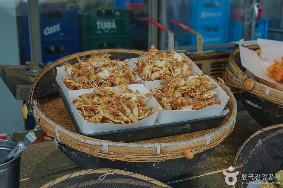 Soraepogu Pocha Street is a culinary paradise featuring numerous food stalls that come alive in the evening. Here, you can indulge in local seafood delicacies like daeha sogeum gui (salt-grilled prawn), kkotgejjim (steamed blue crab), and kkotge twigim (fried blue crab). It’s a fantastic opportunity to experience authentic Korean street food.