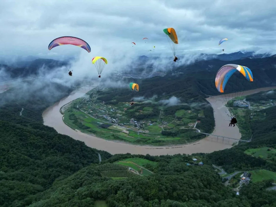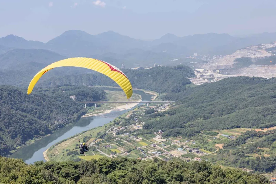 The main attraction here is, of course, paragliding itself. This activity allows you to glide over scenic views that include lush mountains and winding rivers. The flight gives you an exhilarating sense of freedom as you take in panoramic vistas of Danyang’s landscapes.