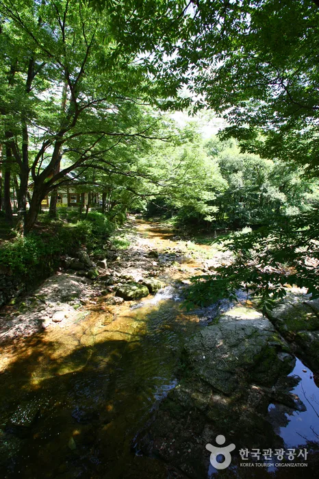 The park has Munjangdae Peak, standing at 1,054 meters above sea level, offering panoramic views of Cheonhwangbong Peak and other notable summits like Gwaneumbong and Birobong. This peak is expansive enough for 50 adults to sit comfortably on its rocky surface. Nearby lies Seokcheon Pond, a tranquil spot that never dries up.
