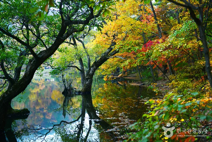 While there are no extensive facilities directly at the pond, nearby trails offer hiking opportunities for those looking to explore more of Juwangsan Mountain. The area is also known for its historical significance; it served as a filming location for the movie ‘Spring, Summer, Fall, Winter…and Spring’ in 2003.